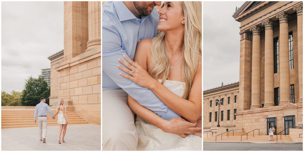 I had such a lovely time with Sydney and Jeff in Philadelphia for their engagement session. We started off at Fairmount Park and the Philadelphia Museum of Art and then headed over to the Rodin Museum. We were blessed with a beautiful fall day! I absolutely loved Sydney’s choice of dress; the bow in the back was such a fun accent and showed personality. This is a great example of a classic and elegant outfit choice that still incorporates a fun trend! These two get married at the Ballroom at Ellis Preserve in August and I can’t wait!